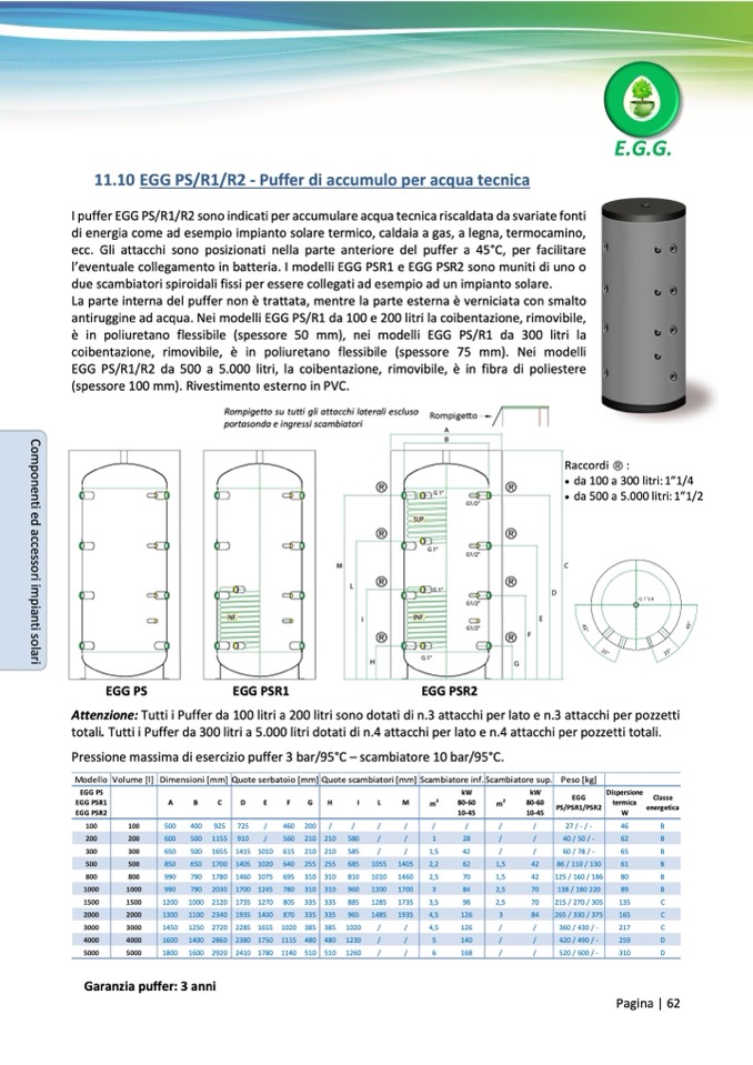 I puffer EGG PS/R1/R2 sono indicati per accumulare acqua tecnica riscaldata da svariate fonti