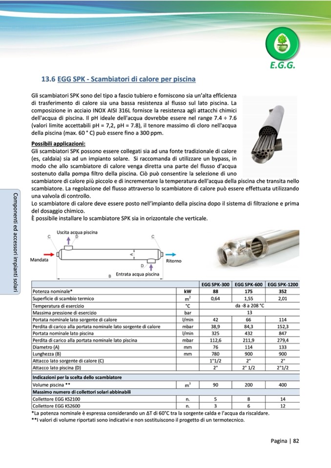 scambiatore di calore più piccolo e di incrementare la temperatura dell'acqua della piscina che transita nello