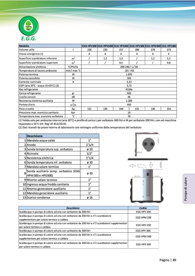 Scaldacqua in pompa di calore ad aria con serbatoio da 200 litri e n°2 scambiatori supplementari