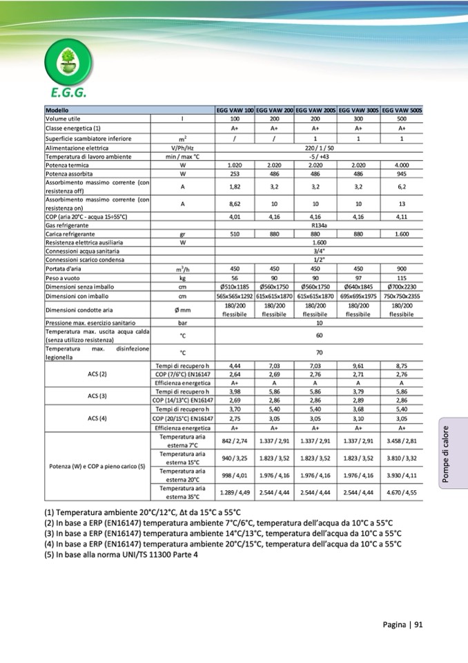 (2) In base a ERP (EN16147) temperatura ambiente 7°C/6°C, temperatura dell’acqua da 10°C a 55°C