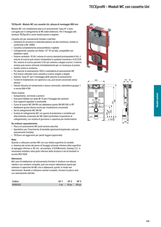 TECEprofil - Modulo WC con cassetta Uni, altezza di montaggio 980 mm