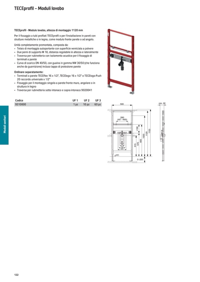 TECEprofil - Modulo lavabo, altezza di montaggio 1120 mm