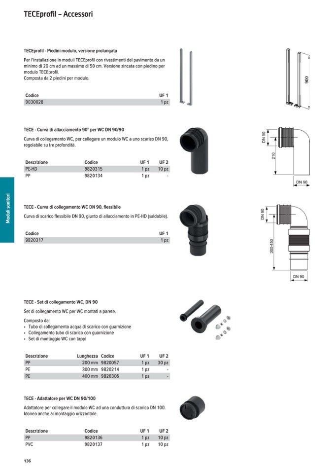 TECE - Curva di allacciamento 90° per WC DN 90/90