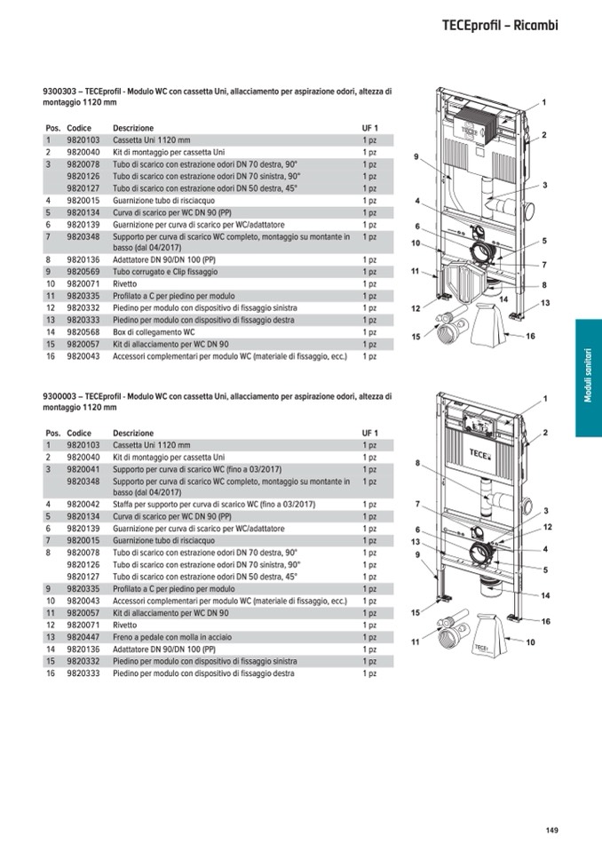 9300003 – TECEprofil - Modulo WC con cassetta Uni, allacciamento per aspirazione odori, altezza di