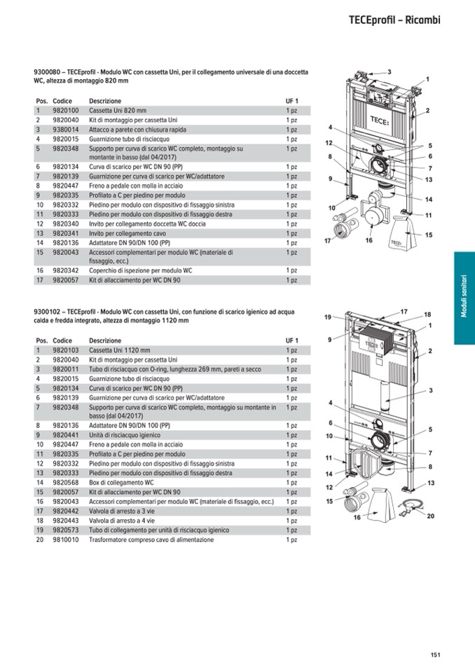 9300080 – TECEprofil - Modulo WC con cassetta Uni, per il collegamento universale di una doccetta