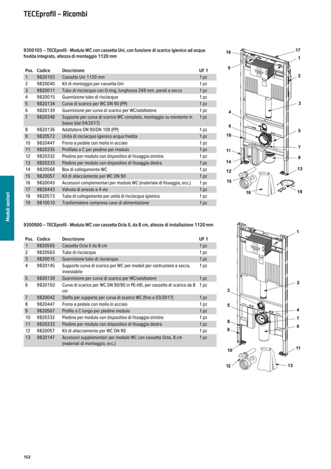 9300500 – TECEprofil - Modulo WC con cassetta Octa II, da 8 cm, altezza di installazione 1120 mm