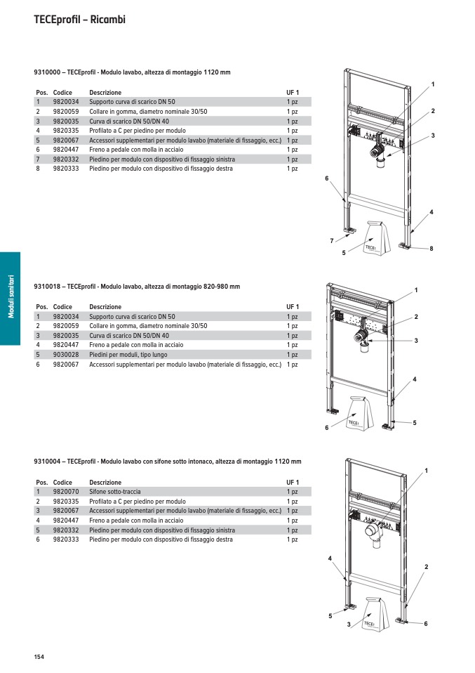 9310000 – TECEprofil - Modulo lavabo, altezza di montaggio 1120 mm