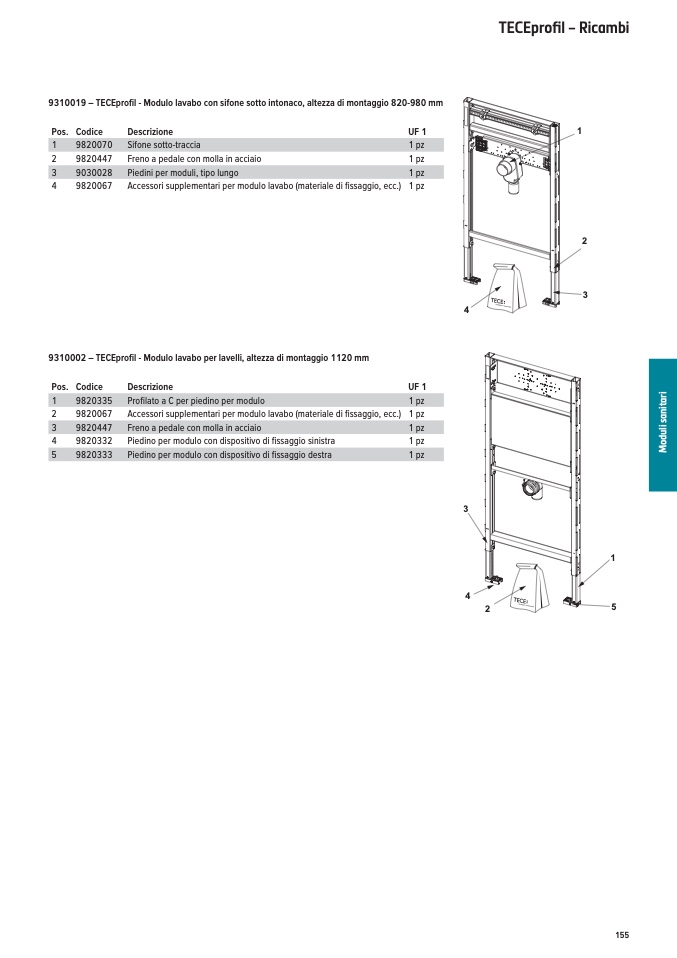 9310002 – TECEprofil - Modulo lavabo per lavelli, altezza di montaggio 1120 mm