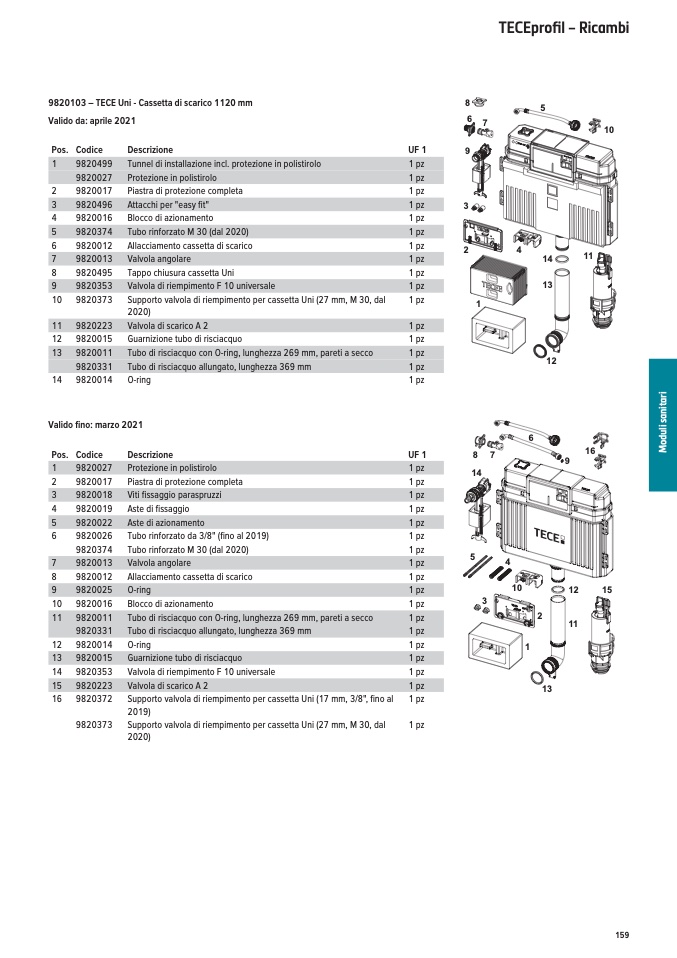 9820103 – TECE Uni - Cassetta di scarico 1120 mm