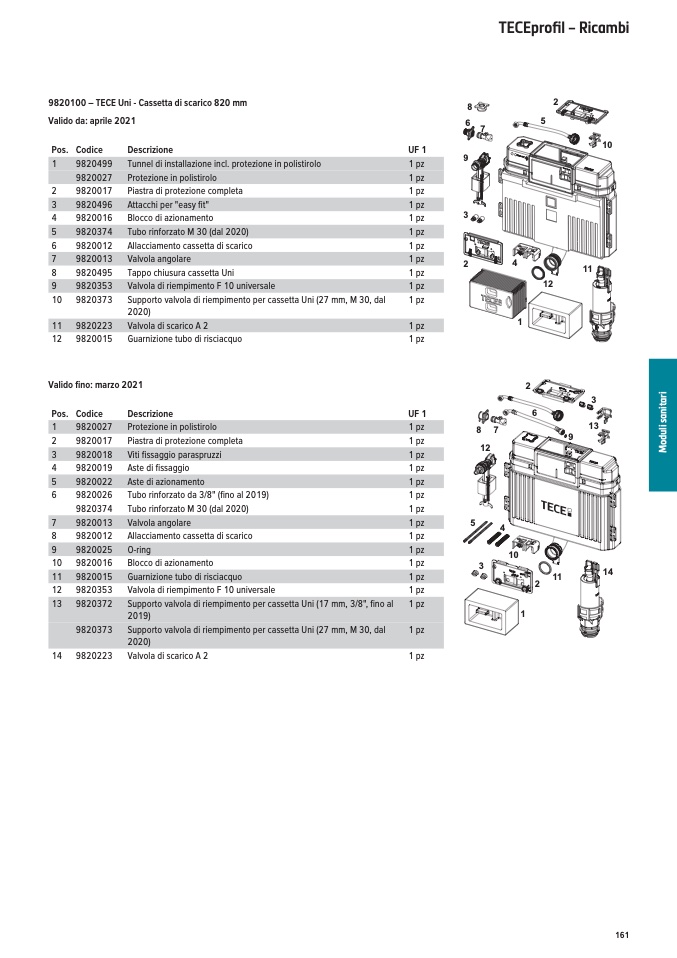 9820100 – TECE Uni - Cassetta di scarico 820 mm