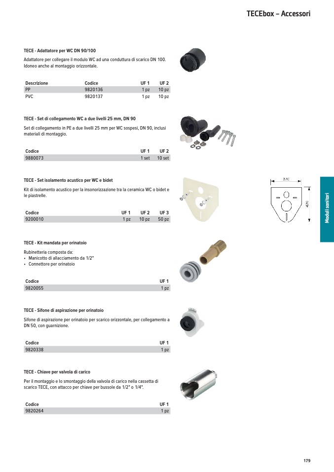 scarico TECE, con attacco per chiave per bussole da 1/2" o 1/4".