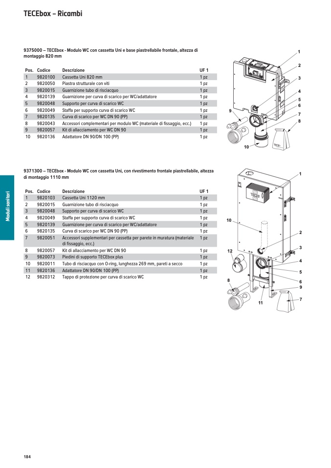 9371300 – TECEbox - Modulo WC con cassetta Uni, con rivestimento frontale piastrellabile, altezza