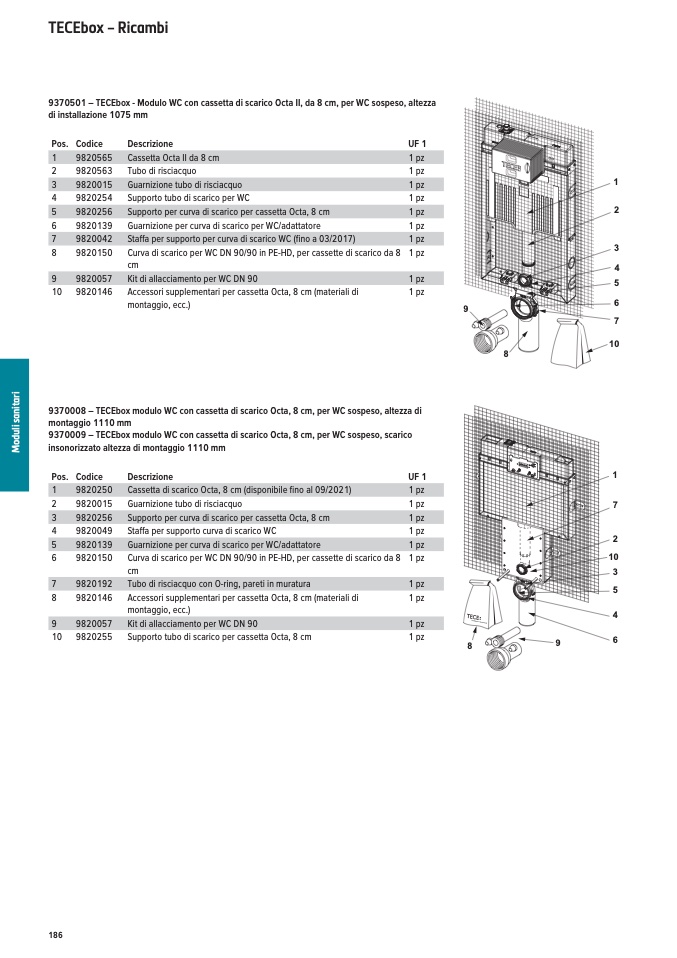 9370501 – TECEbox - Modulo WC con cassetta di scarico Octa II, da 8 cm, per WC sospeso,