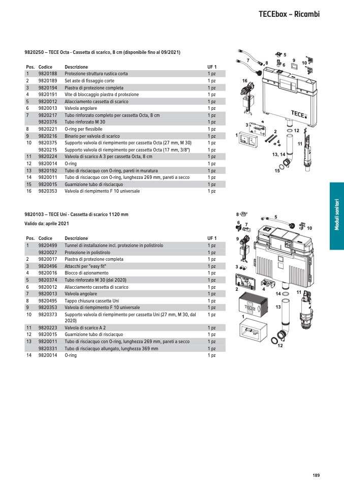 9820250 – TECE Octa - Cassetta di scarico, 8 cm (disponibile fino al 09/2021)
