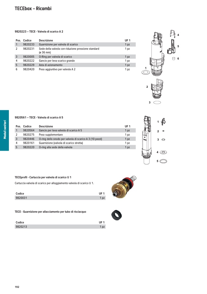 TECEprofil - Cartuccia per valvola di scarico U 1