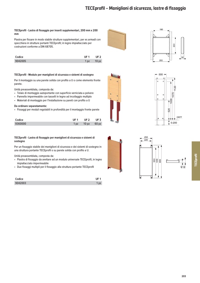 • Piastra di fissaggio da avvitare ad un modulo universale TECEprofil, in legno