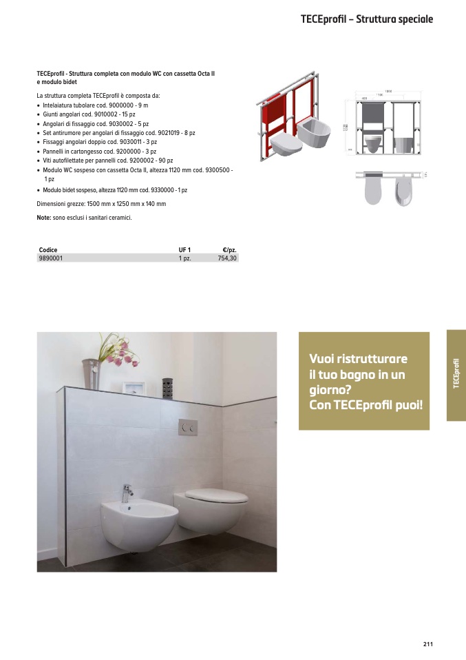 TECEprofil - Struttura completa con modulo WC con cassetta Octa II