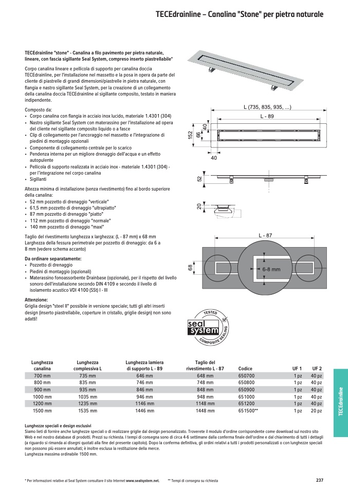 lineare, con fascia sigillante Seal System, compreso inserto piastrellabile*