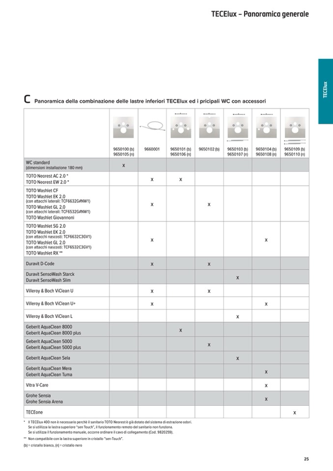 Panoramica della combinazione delle lastre inferiori TECElux ed i pricipali WC con accessori