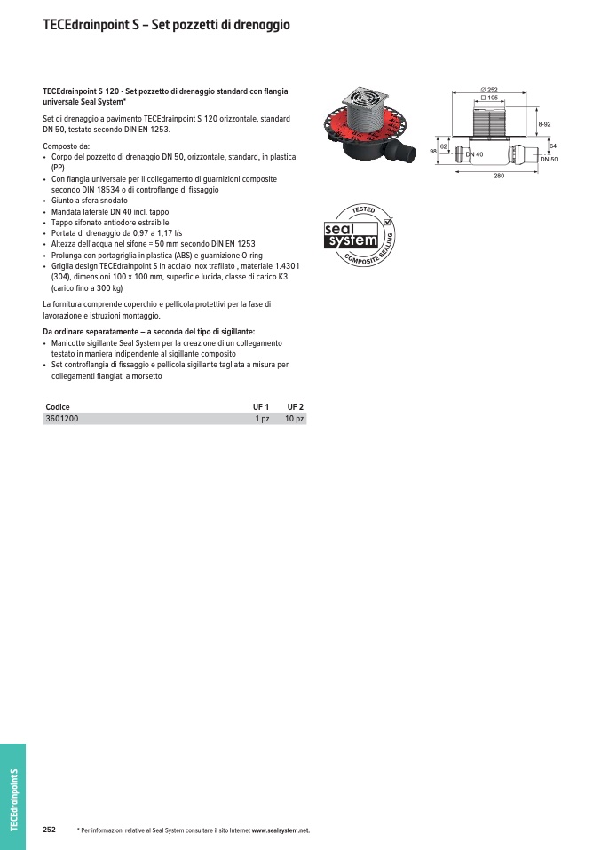 TECEdrainpoint S 120 - Set pozzetto di drenaggio standard con flangia