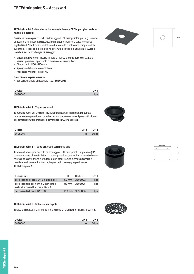 membrana di tenuta. Riattrezzabile per tutti i drenaggi a pavimento
