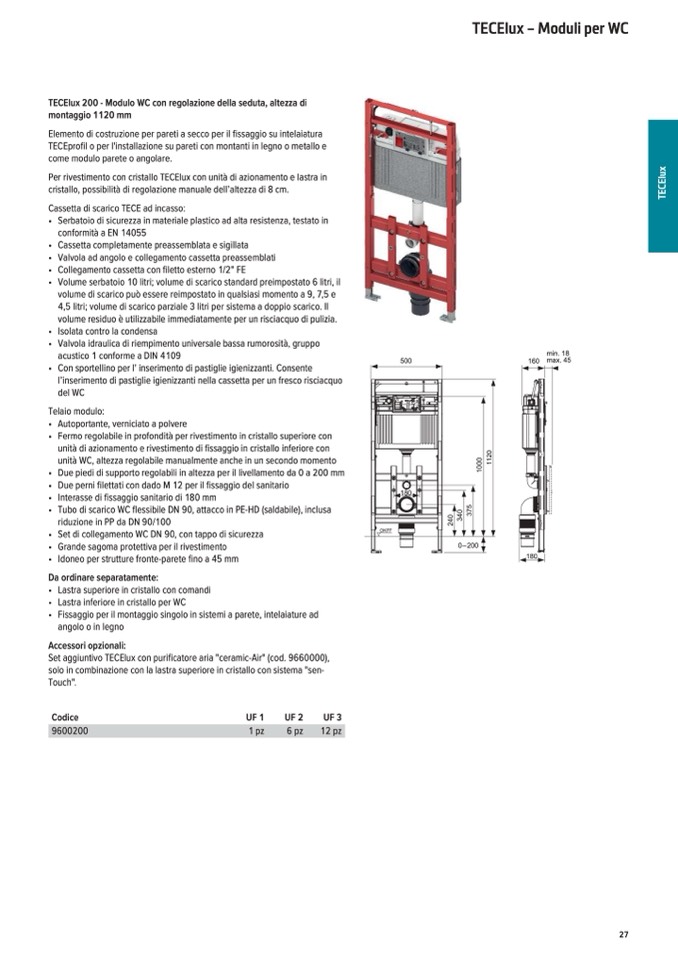 TECElux 200 - Modulo WC con regolazione della seduta, altezza di