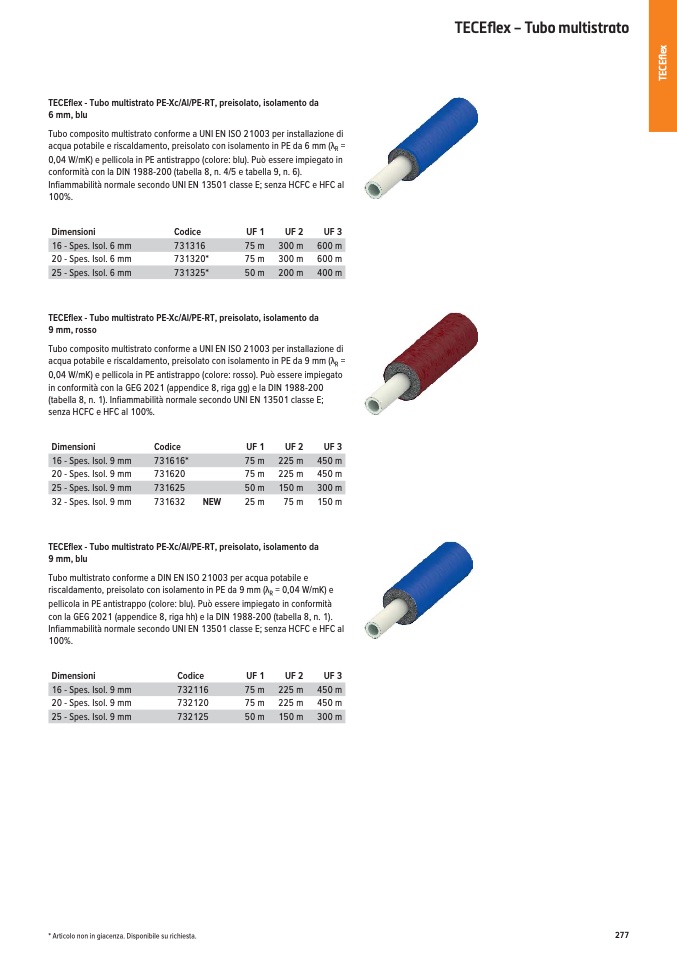 TECEflex - Tubo multistrato PE-Xc/Al/PE-RT, preisolato, isolamento da
