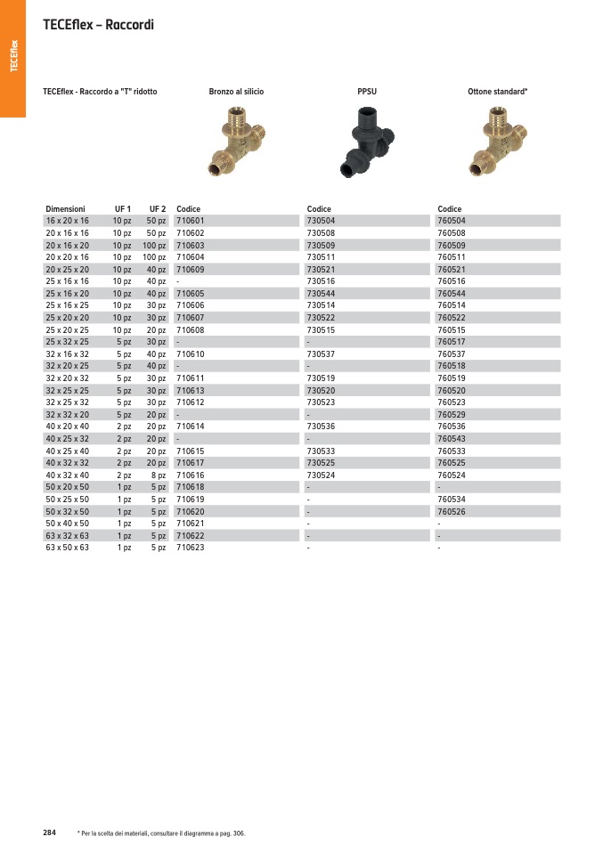 * Per la scelta dei materiali, consultare il diagramma a pag. 306.