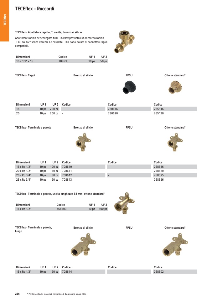 * Per la scelta dei materiali, consultare il diagramma a pag. 306.