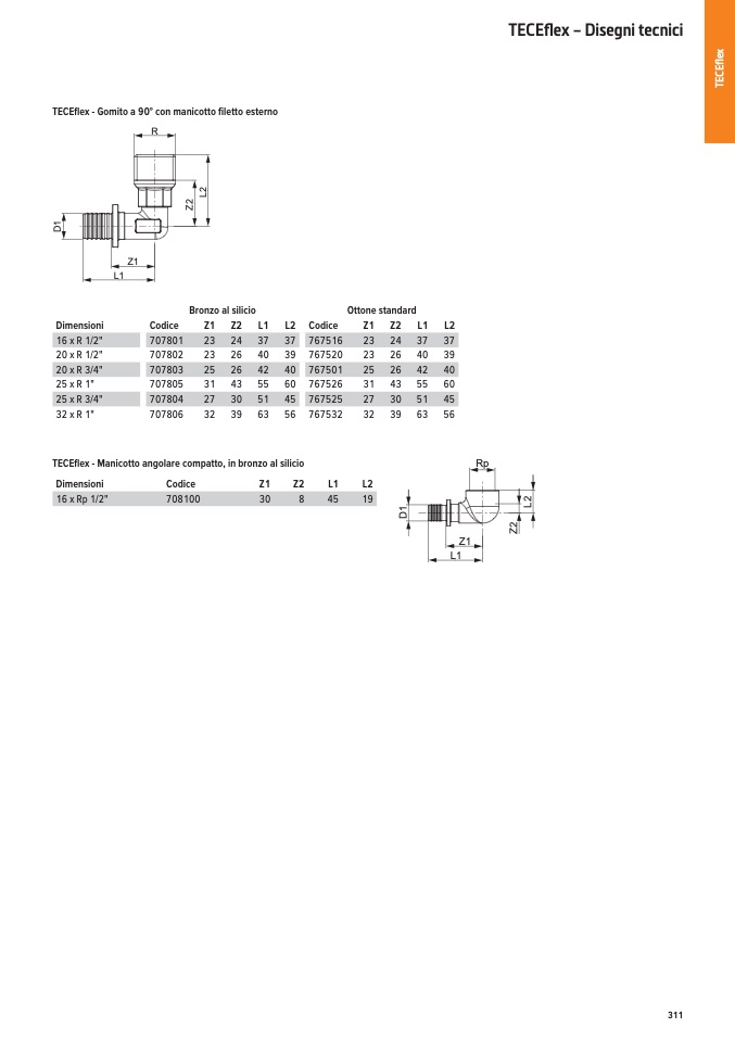 TECEflex - Manicotto angolare compatto, in bronzo al silicio