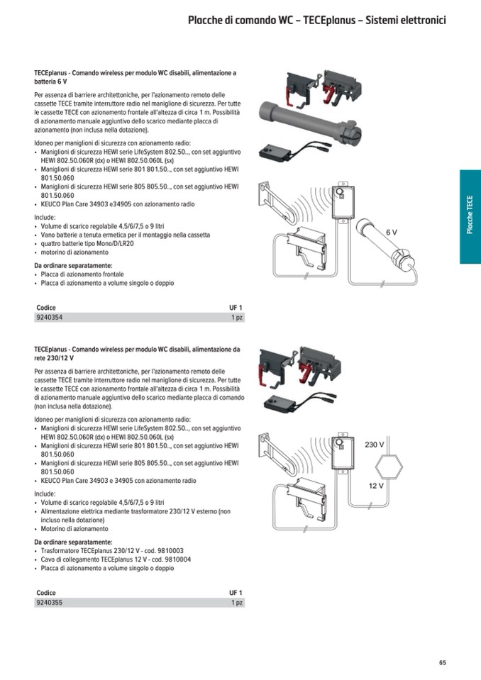 TECEplanus - Comando wireless per modulo WC disabili, alimentazione da