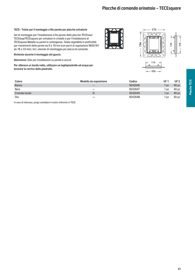 TECE - Telaio per il montaggio a filo parete per placche orinatorio