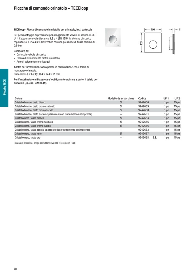 TECEloop - Placca di comando in cristallo per orinatoio, incl. cartuccia