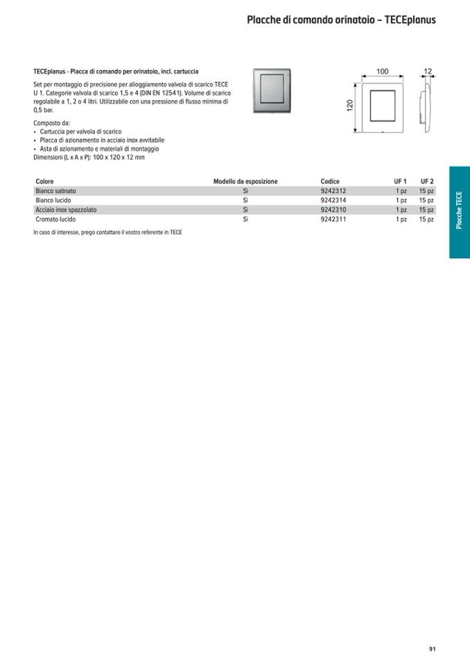 TECEplanus - Placca di comando per orinatoio, incl. cartuccia