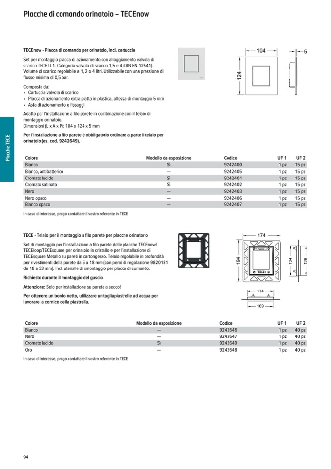 TECE - Telaio per il montaggio a filo parete per placche orinatorio