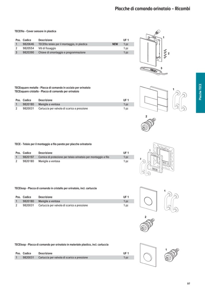 TECEloop - Placca di comando per orinatoio in materiale plastico, incl. cartuccia