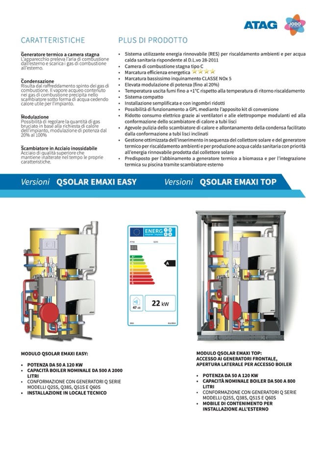 • Predisposto per l’abbinamento a generatore termico a biomassa e per l’integrazione