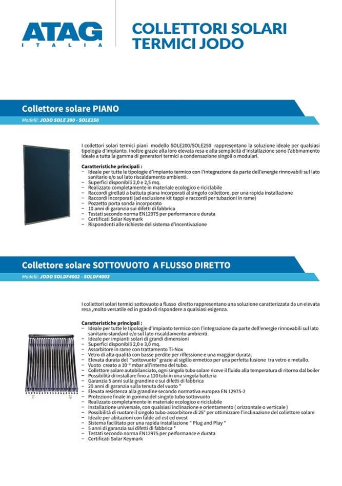 I collettori solari termici piani modello SOLE200/SOLE250 rappresentano la soluzione ideale per qualsiasi