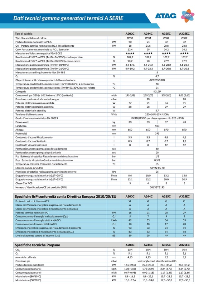 Temperatura prodotti della combustione (Tm/Tr=80/60°C) a pieno carico