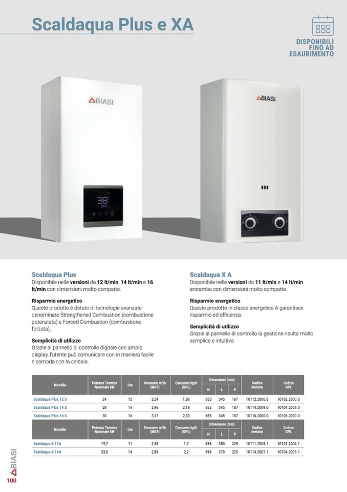 Disponibile nelle versioni da 12 lt/min, 14 lt/min e 16