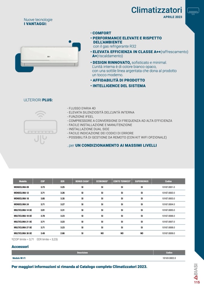Per maggiori informazioni si rimanda al Catalogo completo Climatizzatori 2023.