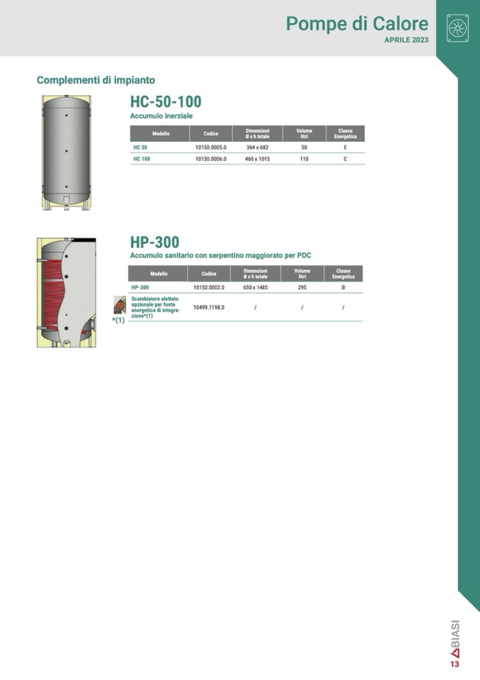 Accumulo sanitario con serpentino maggiorato per PDC
