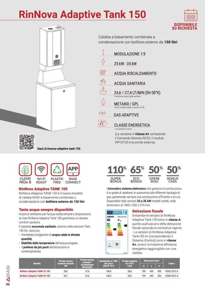 Disponibile nelle versioni 25 e 35 kW modelli combi, nelle