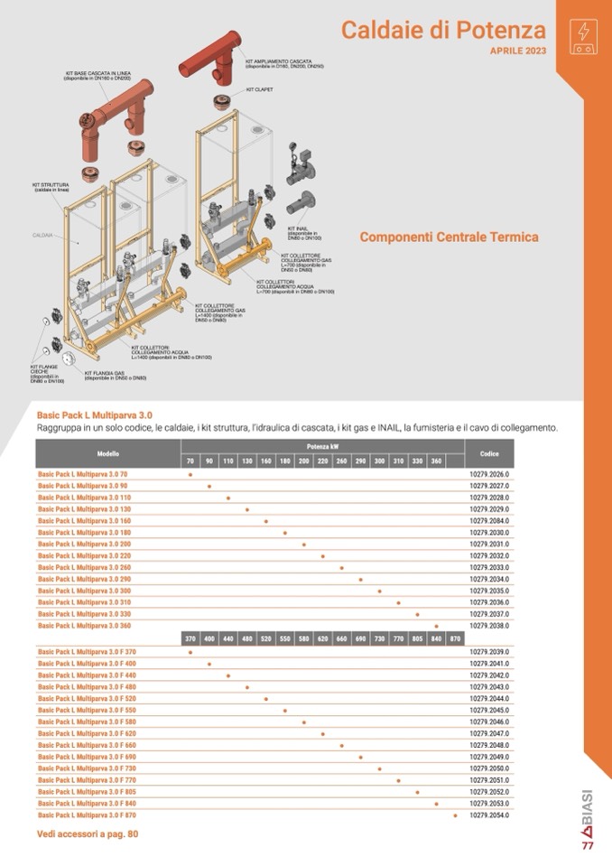 Raggruppa in un solo codice, le caldaie, i kit struttura, l’idraulica di cascata, i kit gas e INAIL, la fumisteria e il cavo di collegamento.