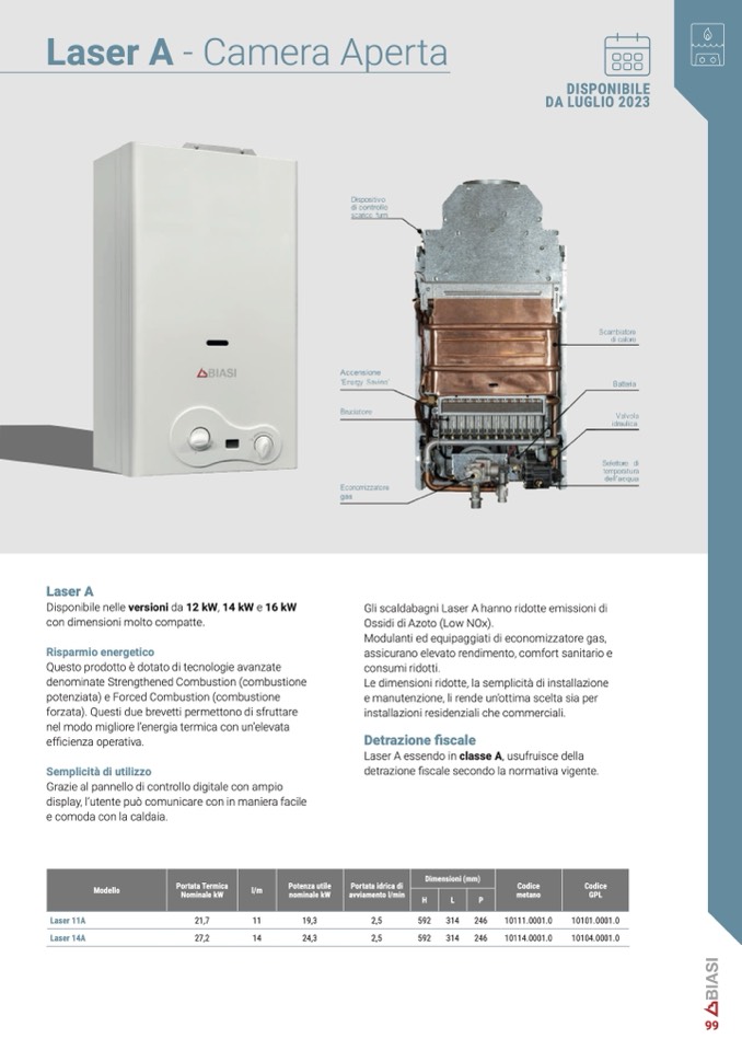 Gli scaldabagni Laser A hanno ridotte emissioni di
