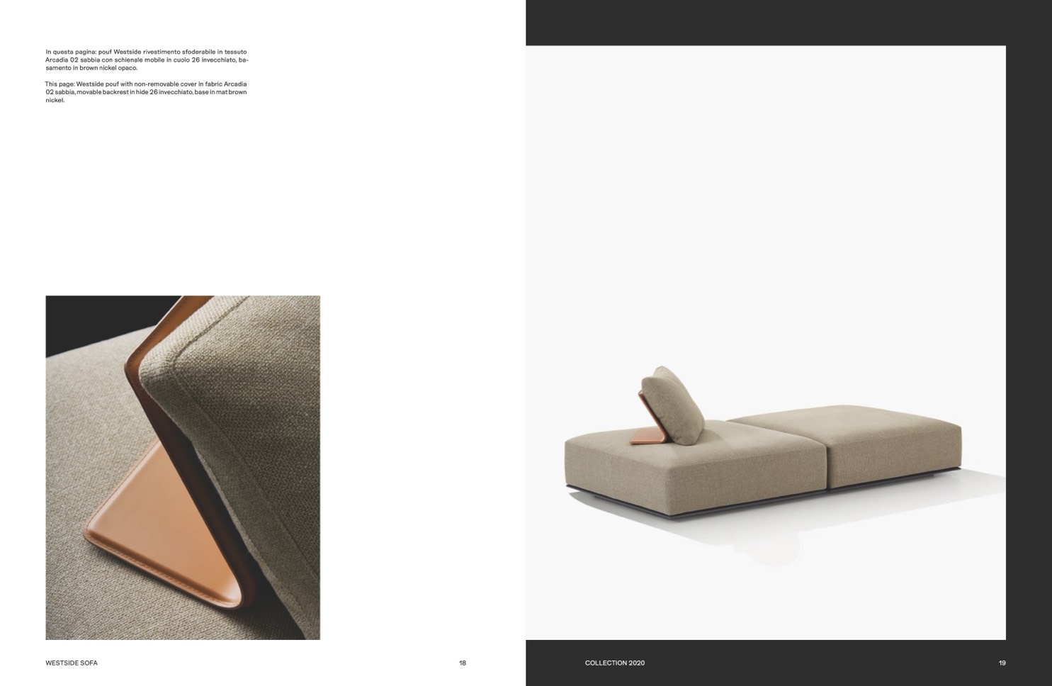 This page: Westside pouf with non-removable cover in fabric Arcadia