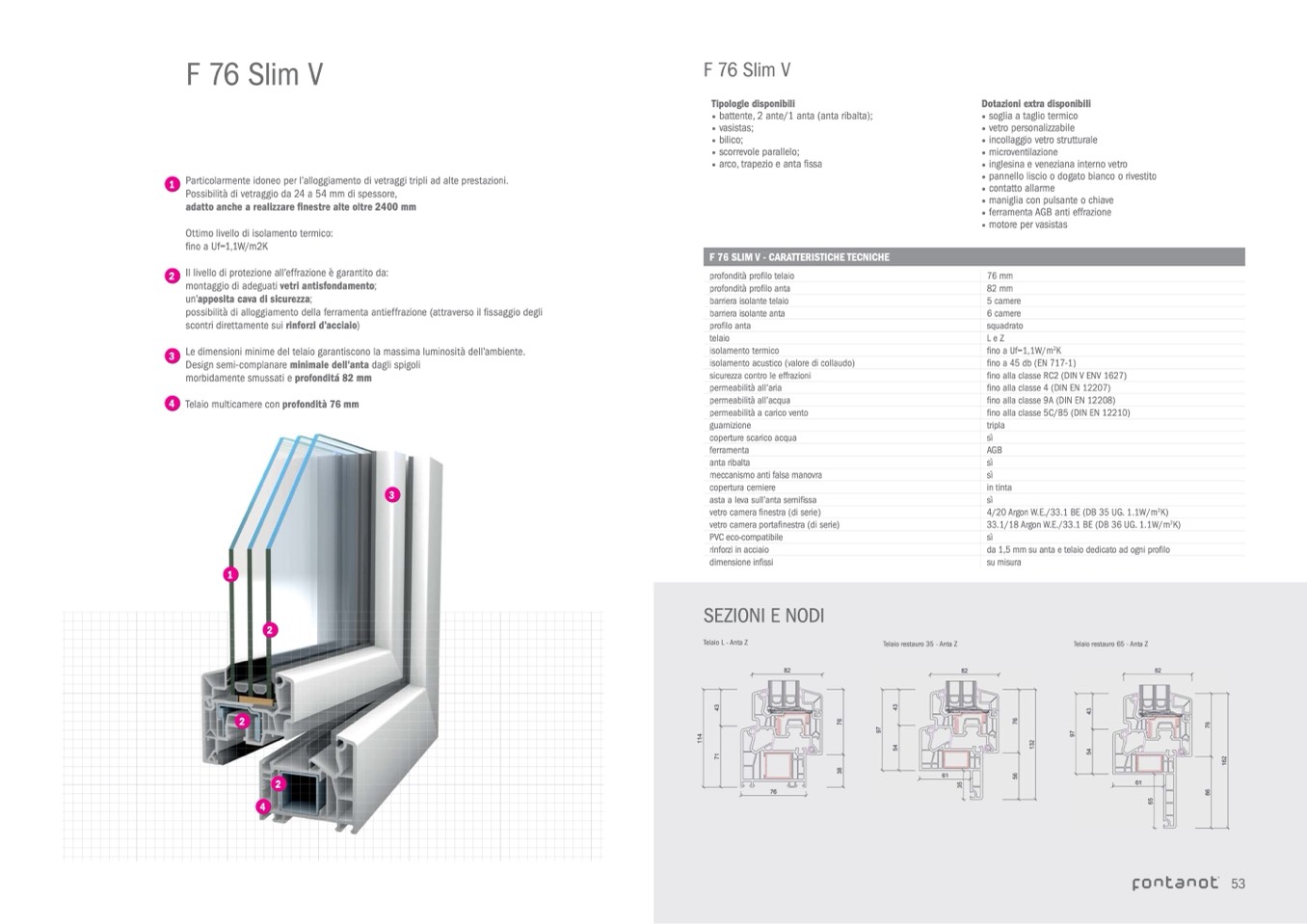 F 76 SLIM V - CARATTERISTICHE TECNICHE
