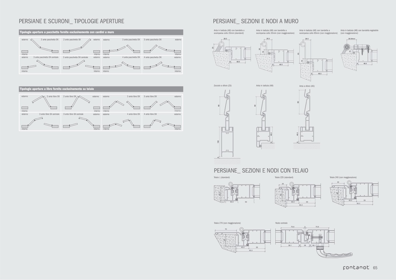 Tipologie aperture a libro fornite esclusivamente su telaio