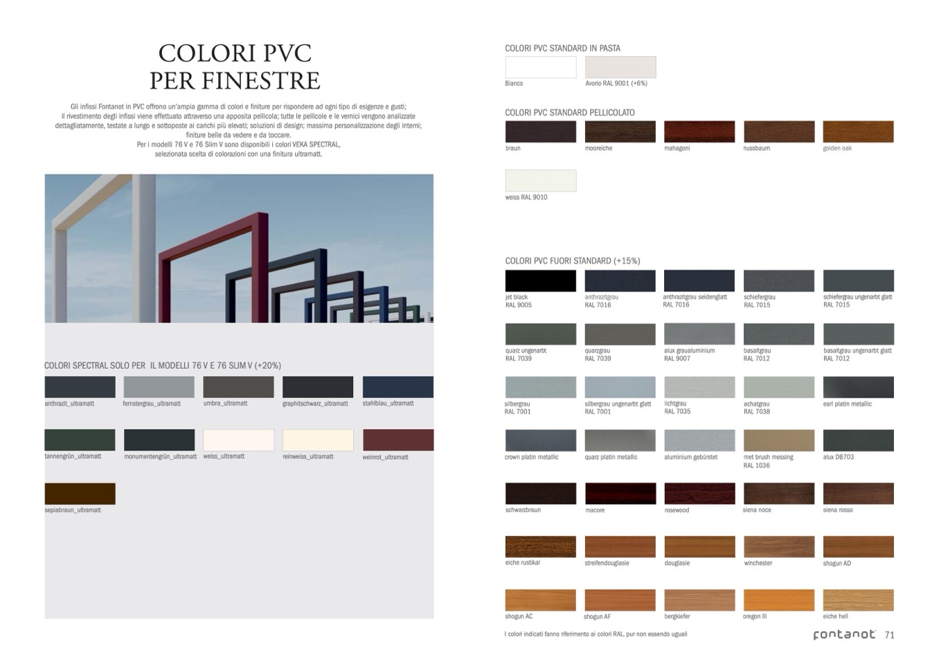 Gli infissi Fontanot in PVC offrono un’ampia gamma di colori e finiture per rispondere ad ogni tipo di esigenze e gusti;