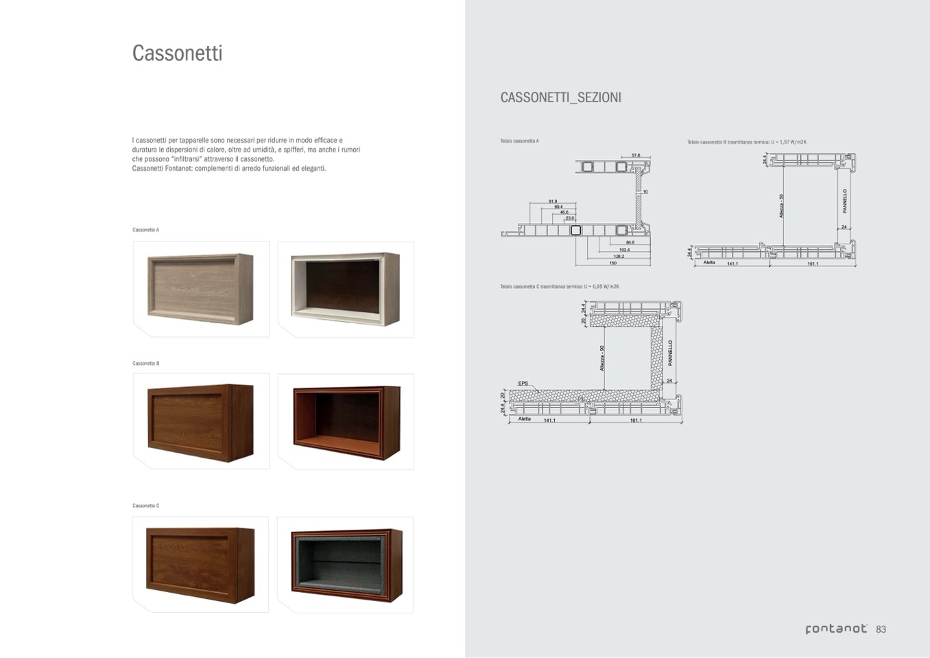 Telaio cassonetto C trasmittanza termica: U = 0,95 W/m2K